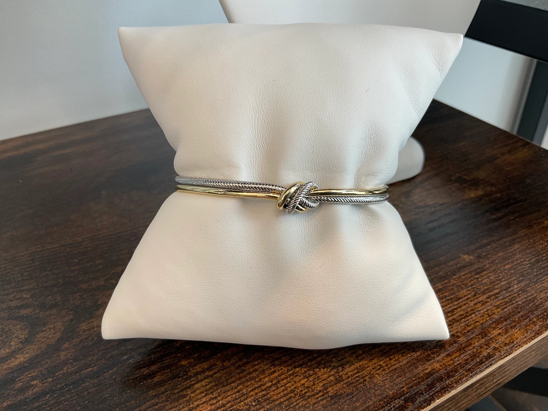 14K Gold Plated CZ Stone Tip Two Tone Braided Cuff Bracelet