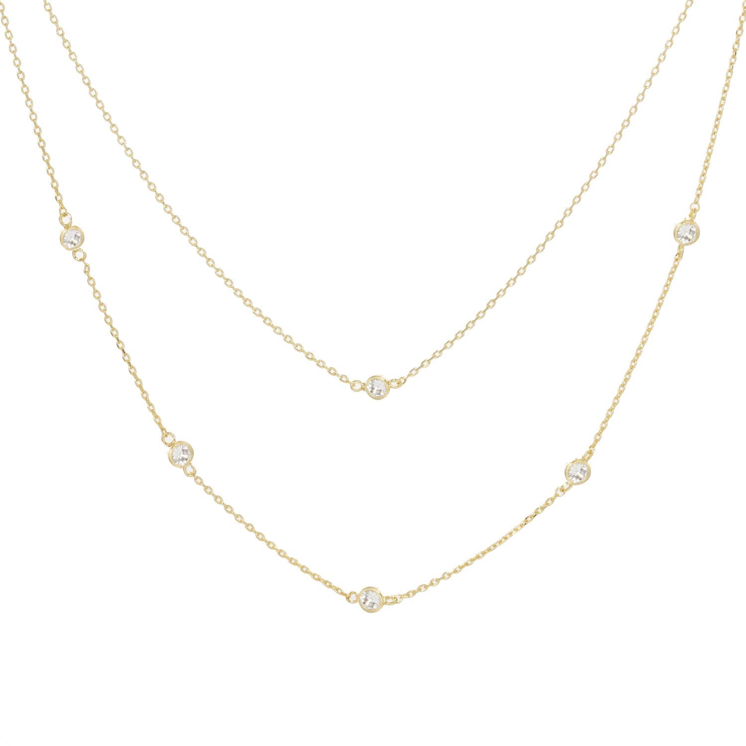 Cubic Zirconia Layered Gold Dipped Necklace - Size: 15" Long + 18" Long +2" Extender - 2 in 1 Necklace - Lead Compliant