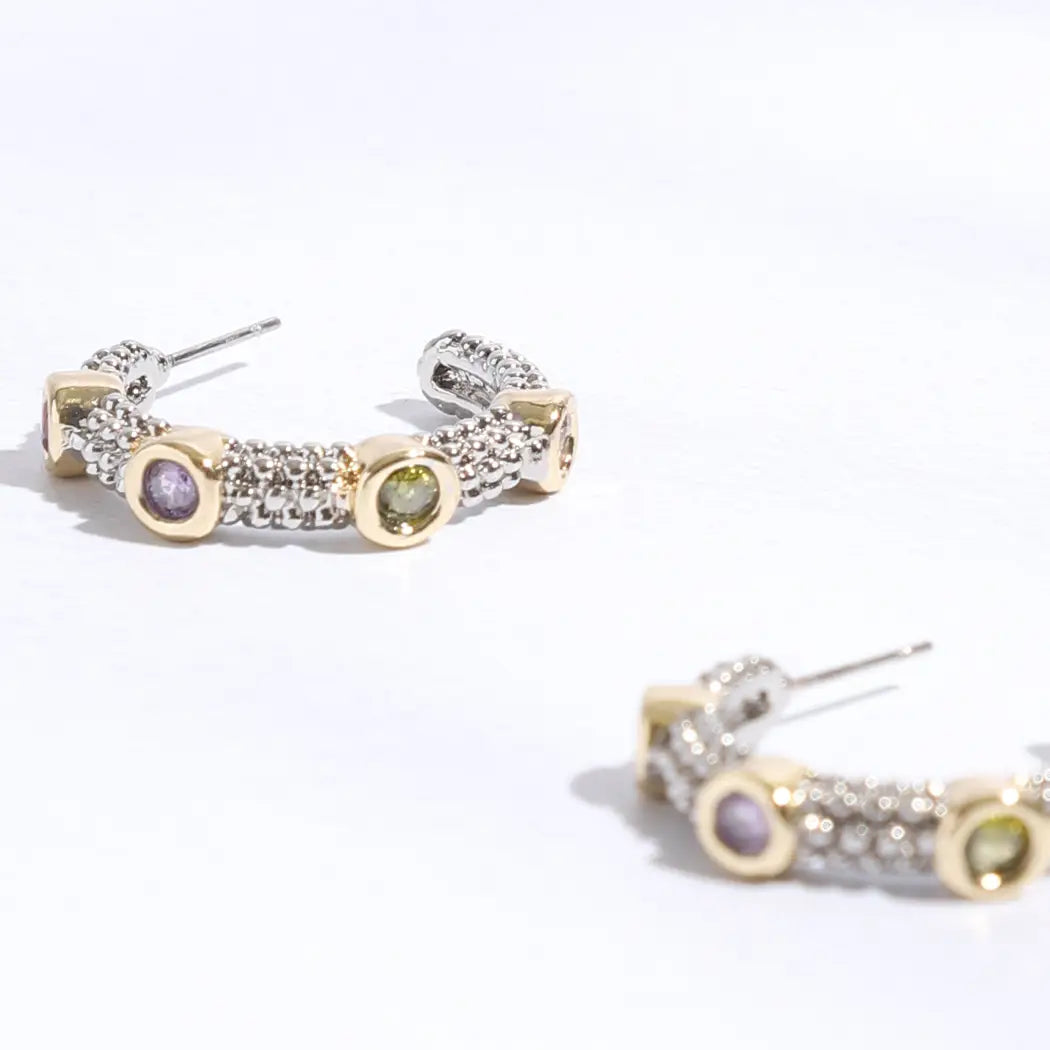 Cz Stones Gold Pointed Silver Hoop Post Earring.