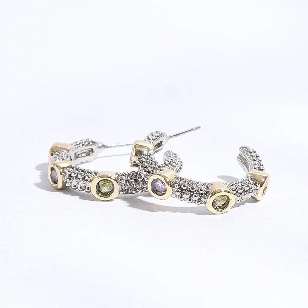 Cz Stones Gold Pointed Silver Hoop Post Earring