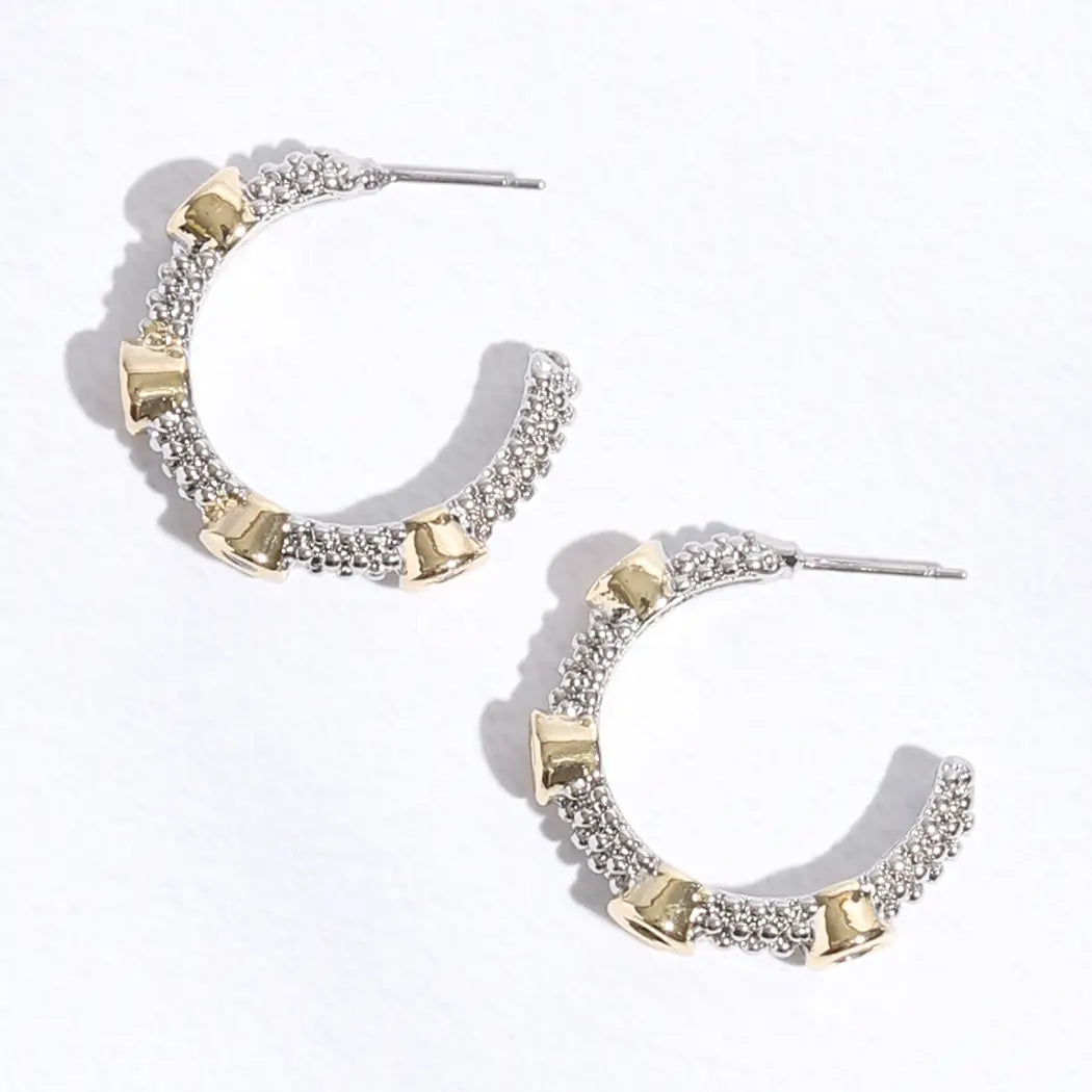 CZ Stones Gold Pointed Silver Hoop Post Earring - Caviar Beaded Design - Metal High Polished Earrings - Huggie Hoop Earrings - Lead and Nickel Compliant Approximately 1" in diameter Discover the epitome of elegance with our meticulously crafted, high-quality stylish earrings. Radiating sophistication, these earrings boast a flawless design that seamlessly combines modern aesthetics with timeless charm. Each detail exudes luxury, from the lustrous finish to the intricate craftsmanship, elevating any ensemble effortlessly. With a perfect balance of grace and glamour, these earrings are a statement piece, exuding confidence and refinement. Adorn yourself with these exquisite jewels to capture attention and accentuate your innate beauty. Experience unparalleled elegance with every wear, as these earrings become a treasured addition to your collection, symbolizing impeccable taste and unmatched craftsmanship.