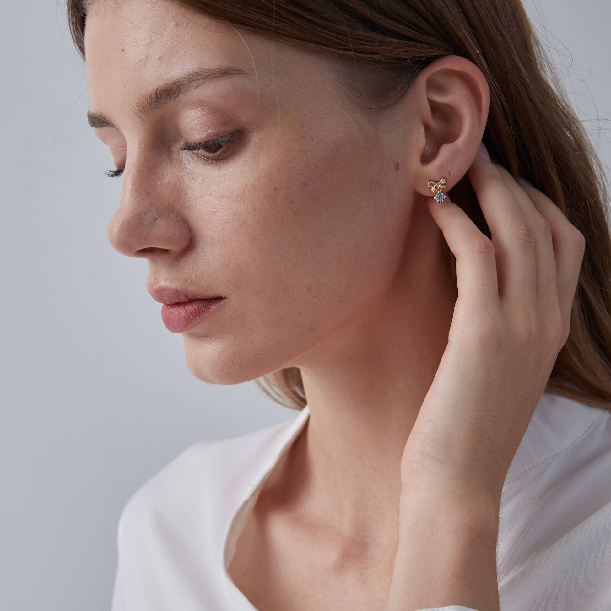 Dainty Gold Bow Tie Drop Stud Earring in 925 Sterling Silver
