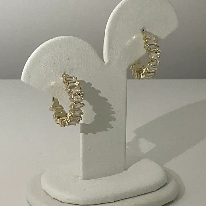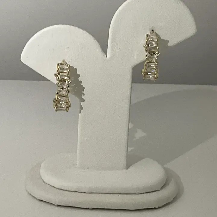 Stunning 18kgp Huggies Staggered baguette cubic zirconia A must for your jewelry box Push backs.