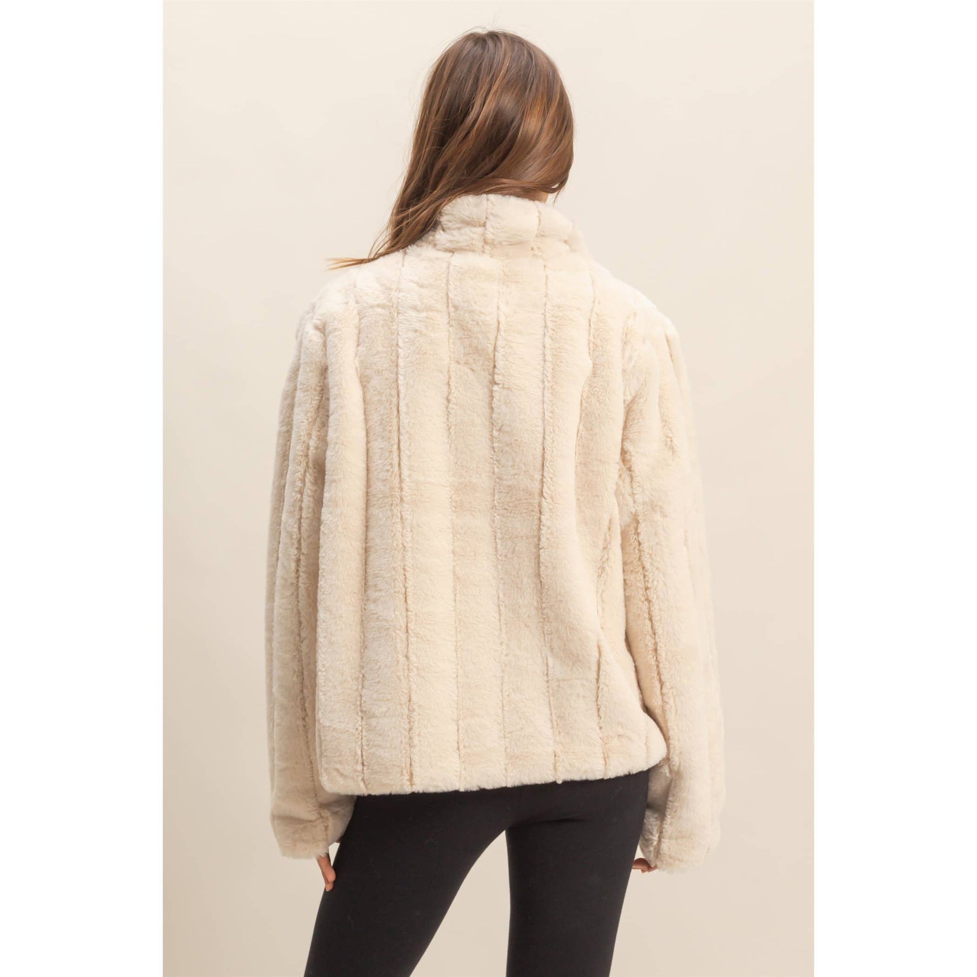 This jacket is a true classic for every wardrobe. Made from faux fur, this warm and cozy number is featured with a collared neck, long sleeves and a classic fit. Hook & eye fastenings down the front complete the look. 100% Polyester