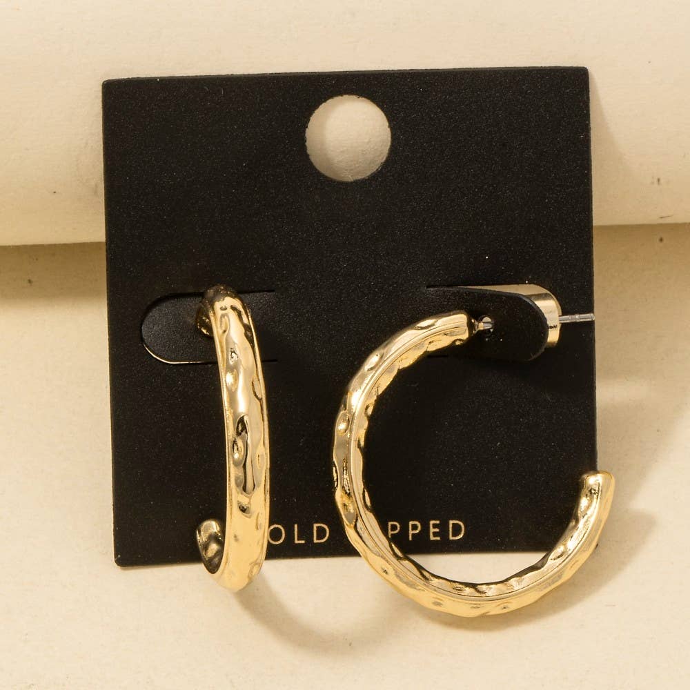 Effortlessly stylish and always on-trend, this pair of hoop earrings comes with a special gold dipped textured design. Unleash the power of style with this versatile pair of hoop earrings, perfect for enhancing the charm of your wardrobe. Made with 95% Brass 5% Ssp.