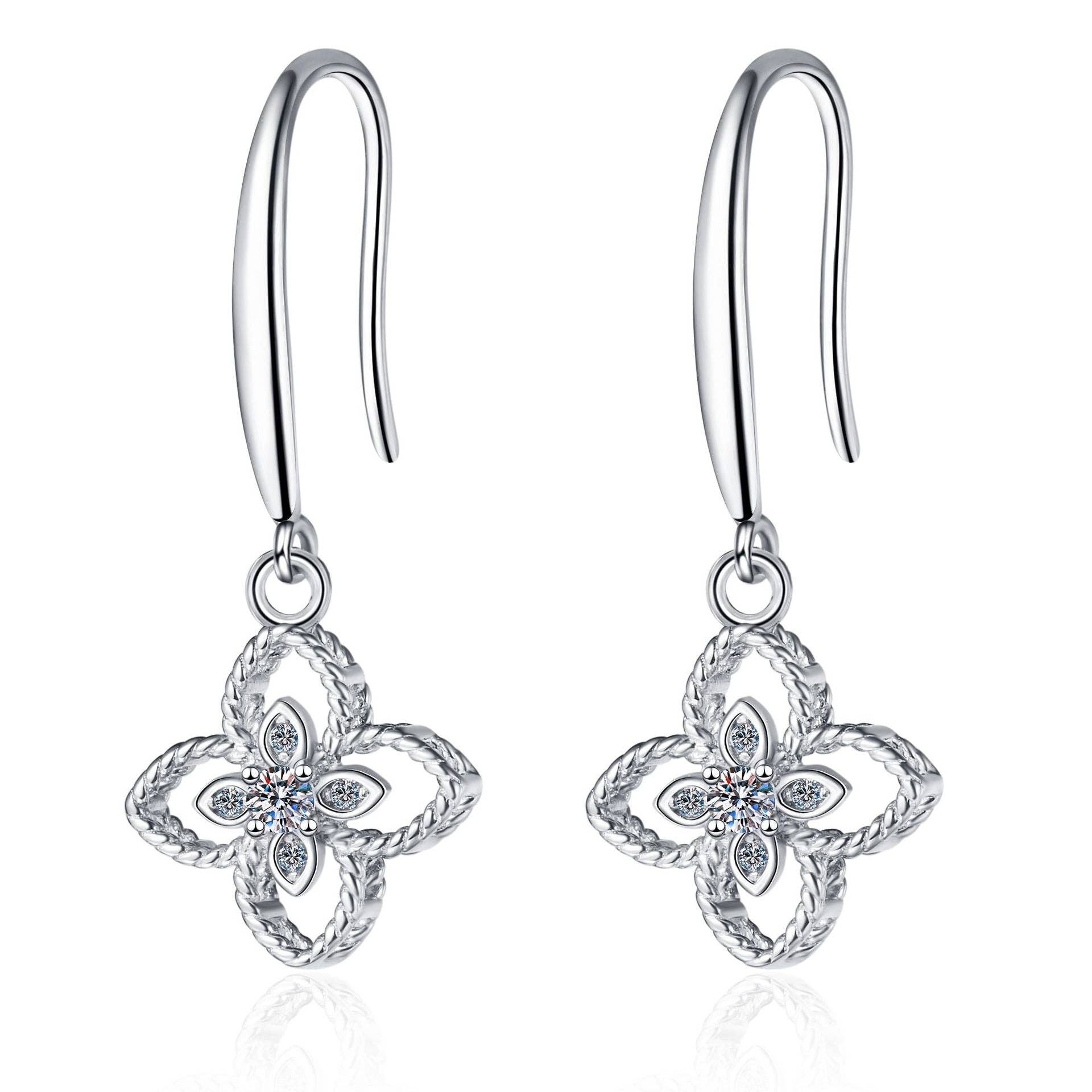 Moissanite Four Leaf Clover Dangling 925 Sterling Silver