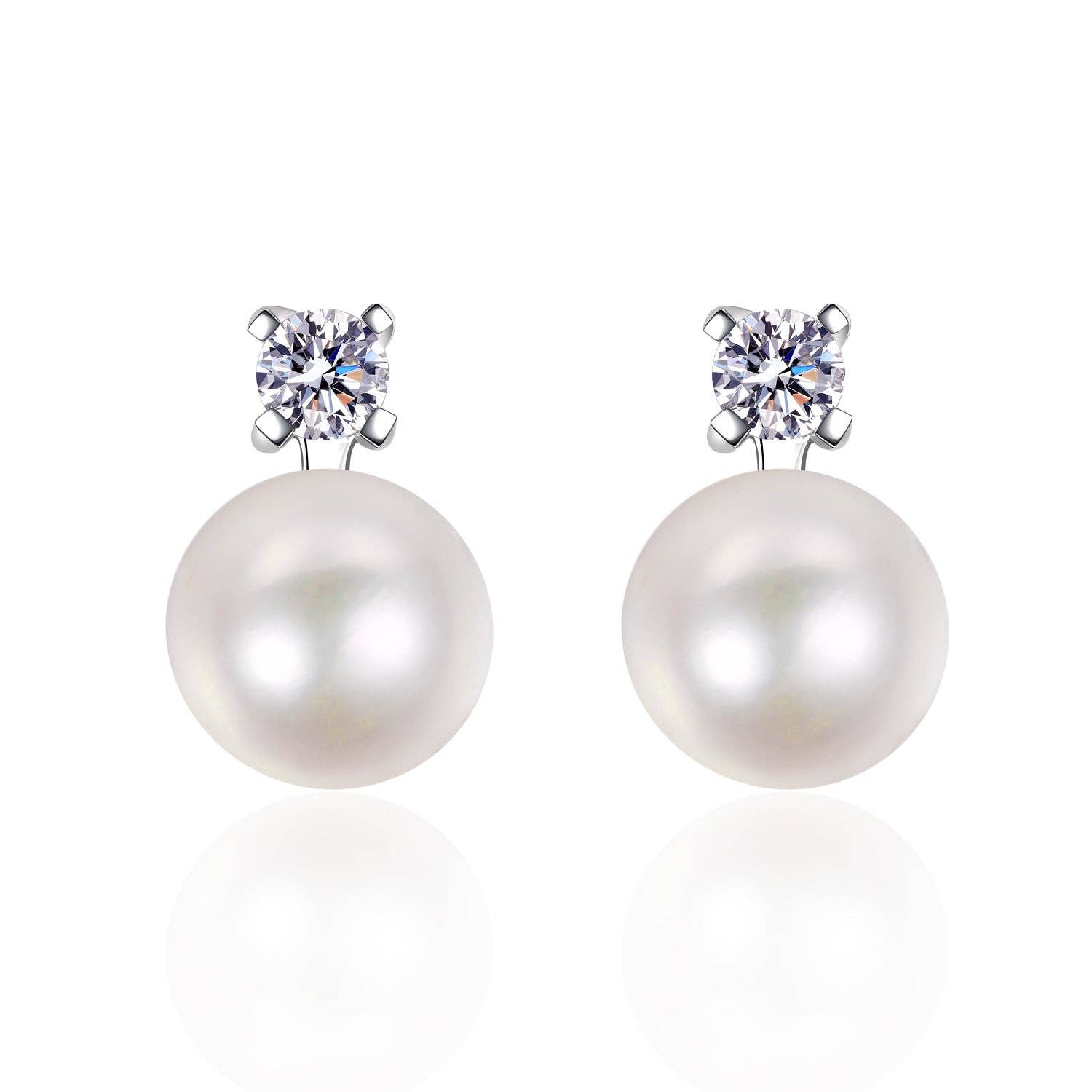 Moissanite Pearl Stud Drop Earrings in 925 Sterling Silver