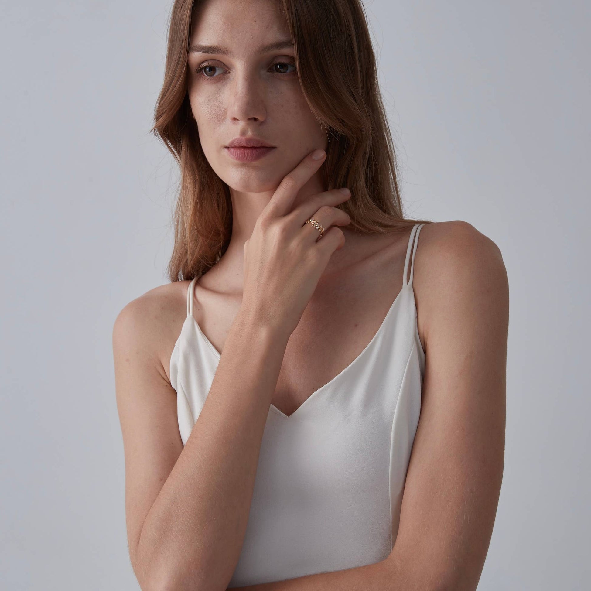 • Material: Solid 925 Sterling Silver ∙ Cubic Zirconia • Finish: Hypoallergenic ∙ Gold Plating • Dimensions: US size adjustable