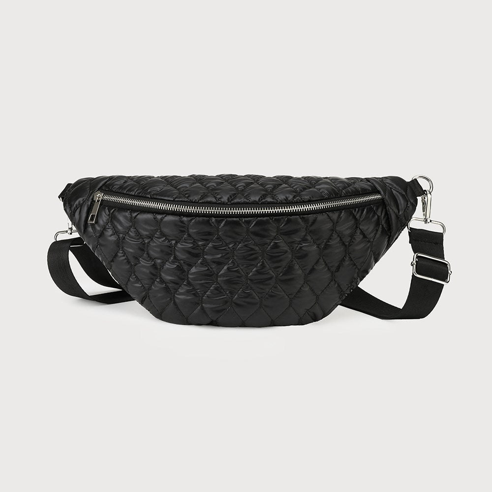 QUILTED BELT BAG WITH ADJUSTABLE STRAP-Black