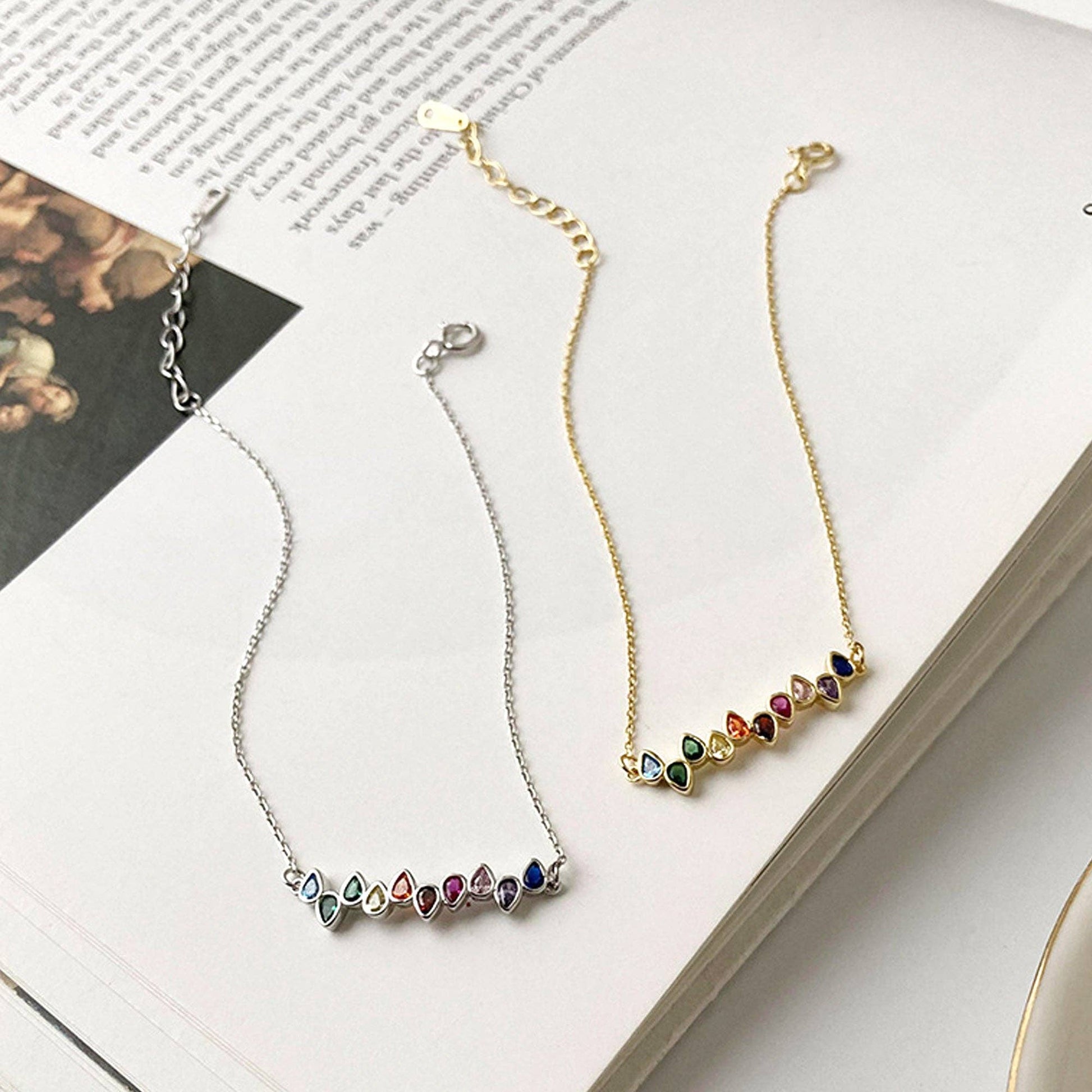 Rainbow Color Teardrop Gem Bracelet in 925 Sterling Silver