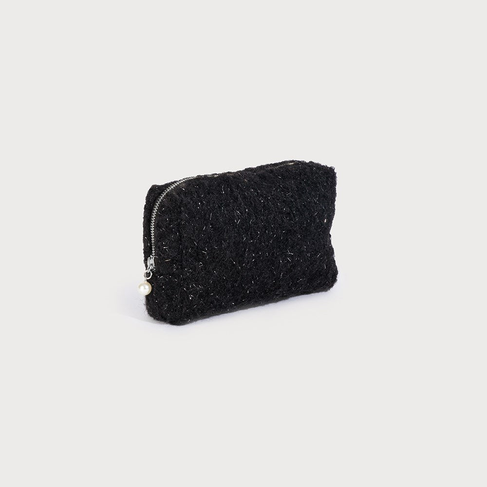 SMALL COSMETIC POUCH WITH PEARL ZIPPER